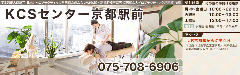 KCSセンター京都駅前の施術スタッフは、WHO世界容認レベルの「カイロプラクター」と姿勢科学士の専門コースを修了した「姿勢セラピスト」です。